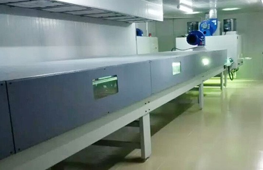 工藝要求 UV高光面漆 產(chǎn)品種類 酒店家具 產(chǎn)線數(shù)量 1條 設備特色 靜面流平隧道的使用,隔氧干燥的高質(zhì)量漆面效果。 生產(chǎn)產(chǎn)能 UV高光面漆噴涂線:1500m2/8h (生產(chǎn)員3人/線) 廢氣處理 干式過濾塔+光氧催化+活性碳 -